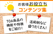 TOA製品紹介と検索 音響機器、放送機器を探す 拡声器、PAシステム、ワイヤレスシステムを探す メガホン 移動用ポータブルアンプシステム 卓上アンプ、設備用PAアンプシステム 車載用PAアンプ、車載用ホーンスピーカー ワイヤレス機器 遠隔放送機器、音声伝送機器を探す 音声ネットワーク機器 非常用・業務用放送設備、会議・議場用システムを探す 非常用・業務用放送設備 会議・議場用システム 学校向けAVシステム マイク、スピーカーほか音響機器を探す マイクロホン、スタンド、接続ケーブル、レクチャーアンプ 天井・壁掛型・ホーン・体育館・特殊スピーカー、音量調節器 BGM・サウンド用スピーカー ミキサー、プロセッサー、イコライザー、アンプ プレーヤー、音声ファイルほか周辺機器 品名・品番から探す 品名例) ドームカメラ 品番例) G-R301-2 技術・知識情報 NEWS OF TOANEWS OF TOAカスタマーサポート ものづくりの挑人たちお客様お役立ちコンテンツ集